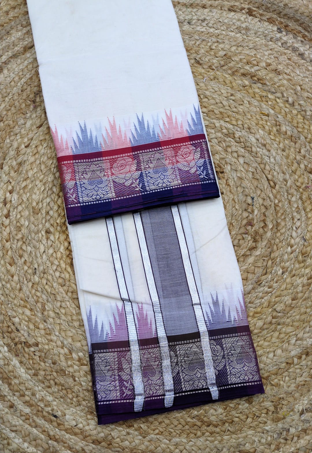 - A 9×5 pure zari border dhoti